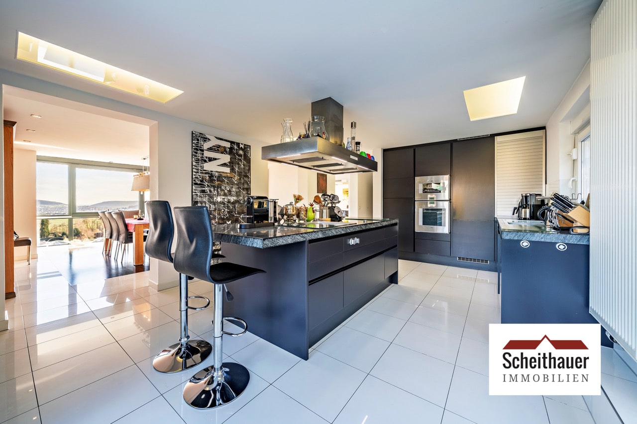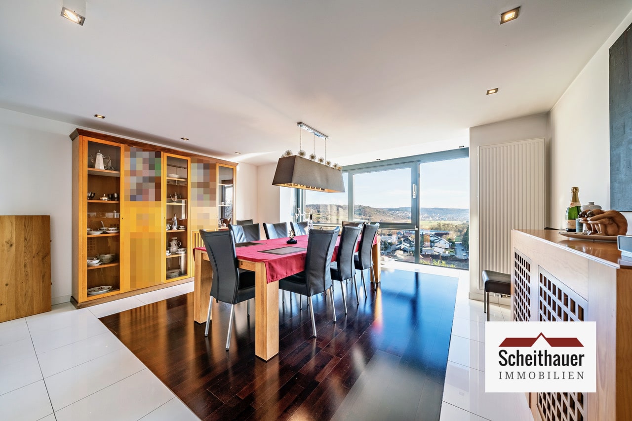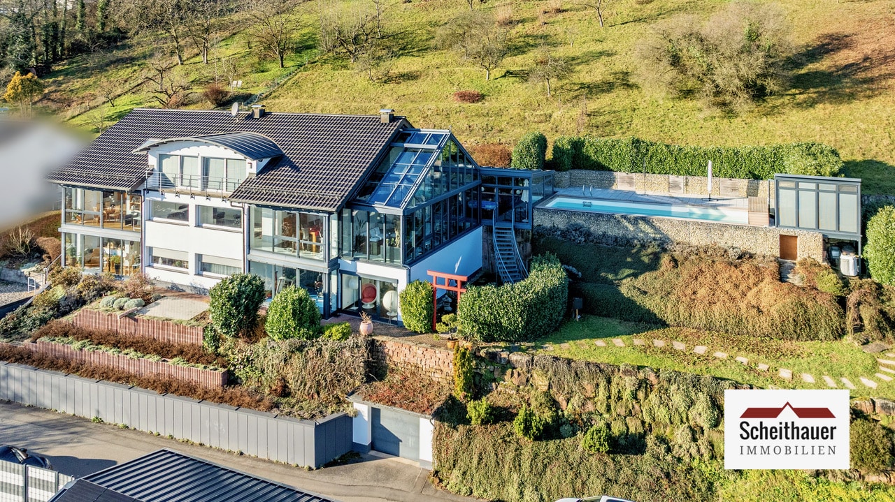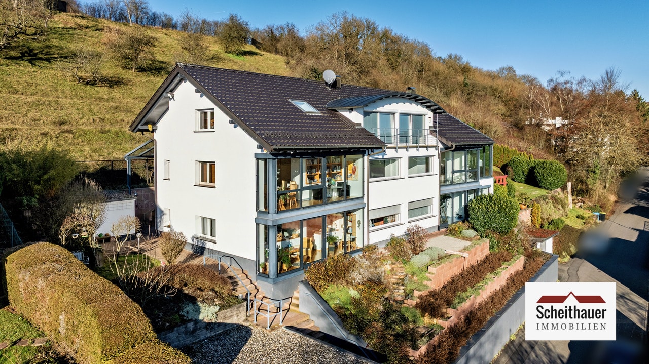 In begehrter Höhenlage von Binau, eingebettet in ein attraktives und ruhiges Wohngebiet, eröffnet sich dieses außergewöhnliche Anwesen als seltene Symbiose aus Großzügigkeit, Privatsphäre und exklusivem Wohnkomfort. Der unverbaubare Panoramablick über das gesamte Neckartal prägt das Wohngefühl und begleitet den Alltag aus nahezu allen Räumen des Hauses. Das freistehende Wohnhaus wurde 1963/1964 in massiver Bauweise errichtet und im Jahr 2015 umfassend modernisiert und neu interpretiert. Heute präsentiert sich die Immobilie als hochwertiges Wohnhaus mit insgesamt vier Wohneinheiten, einer Gesamtwohnfläche von ca. 511,15 m² sowie zusätzlichen 43,09 m² Terrassenfläche. Das Anwesen erstreckt sich über zwei zusammenhängende Grundstücke mit insgesamt ca. 4.504 m², was ein außergewöhnliches Maß an Freiraum und Gestaltungsqualität bietet.