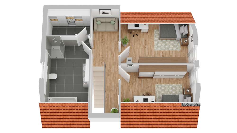 Besonders hervorzuheben ist das helle, großzügige Tageslichtbad mit Badewanne und separater Dusche – hier beginnt jeder Tag entspannt. Ein zusätzliches Gäste-WC im Erdgeschoss sorgt für Komfort im Alltag. Schöne Echtholzböden unterstreichen das warme Wohnambiente und schaffen eine hochwertige Wohnqualität.