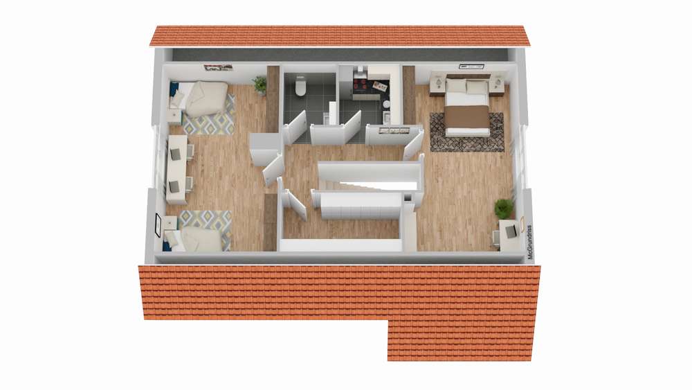 Dachgeschoss (Ausbaureserve ca. 79,5 m²): Vorgesehen für 2 Zimmer, Küche und Bad – Ausbau noch nicht umgesetzt